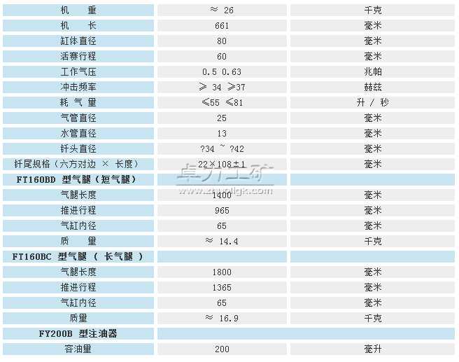 YT28氣腿式鑿巖機(jī)配套氣腿:FT160BC 、FT160BD: