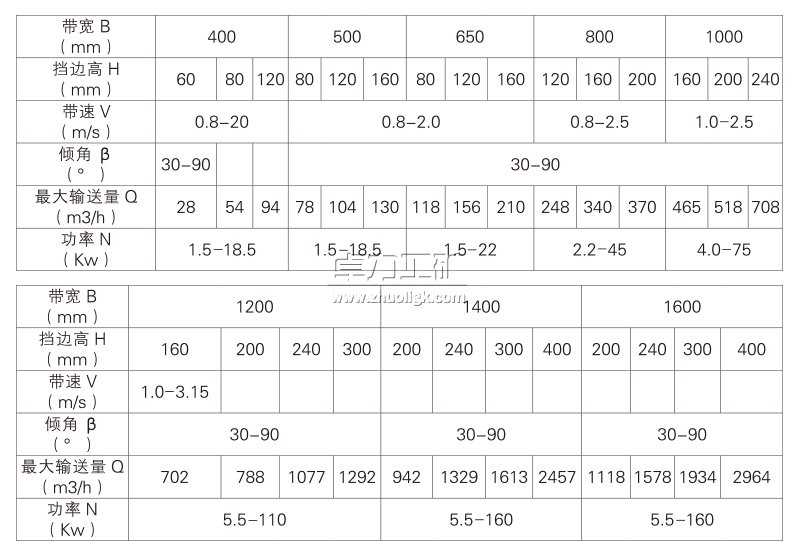 (4)、輸送傾角為0°~90°范圍內(nèi),最大垂直輸送物料粒度為400mm。