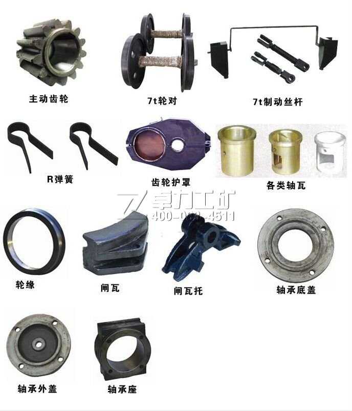 主動(dòng)齒輪、7t輪對 7t制動(dòng)絲桿 R彈簧 齒輪護(hù)罩 各類軸瓦 輪緣 閘瓦 閘瓦托 軸承底蓋 軸承外蓋 軸承座