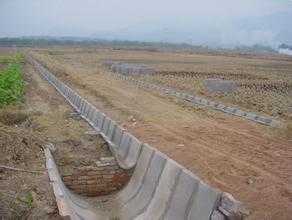 4、渠邊護土,要求顆粒不大于20cm,密度均勻平整.