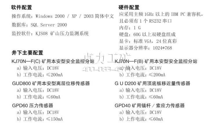 井下設(shè)備主要由KJ70N-F(B)礦用本安監(jiān)控分站、KJ70N-F(C)礦用本安監(jiān)控分站、GUD800礦用本安型離層位移傳感器、GPD60壓力傳感器、礦用錨桿/索應(yīng)力傳感器、礦用頂?shù)装逡平總鞲衅?、KDW28-18礦用隔爆兼本安不間斷電源、KDW17礦用隔爆兼本安電源、KDWO。7/18-J礦用隔爆兼本安電源繼電器箱組成。