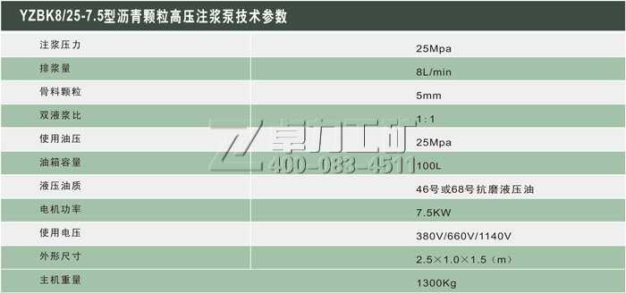 YZBK8/25-7.5型瀝青顆粒高壓注漿泵技術(shù)參數(shù)表: