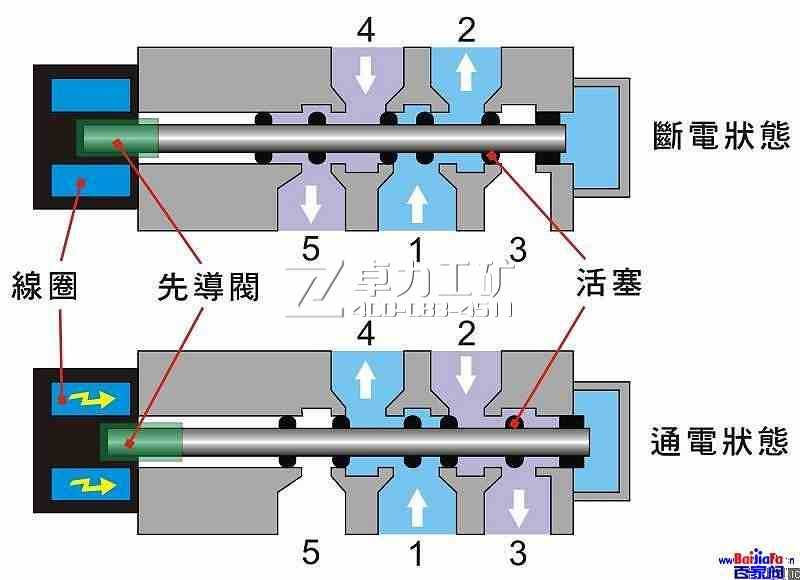 關(guān)于二位五通電磁閥原理圖電-氣轉(zhuǎn)化組件將電訊號轉(zhuǎn)化為氣動訊號,電氣訊號輸入控制了氣動輸出。最常用的電-氣轉(zhuǎn)換組件是電磁閥(Solenoid actuated valves)。電磁閥既是電器控制部分和氣動執(zhí)行部分的接口,也是和氣源系統(tǒng)的接口。電磁閥接受命令去釋放,停止或改變壓縮空氣的流向,在電-氣動控制中,電磁閥可以實現(xiàn)的功能有:氣動執(zhí)行組件動作的方向控制,ON/OFF開關(guān)量控制,OR/NOT/AND邏輯控制。在電磁閥家族中,最重要的是電磁控制換向閥(Solenoid actuated directional control valves)。