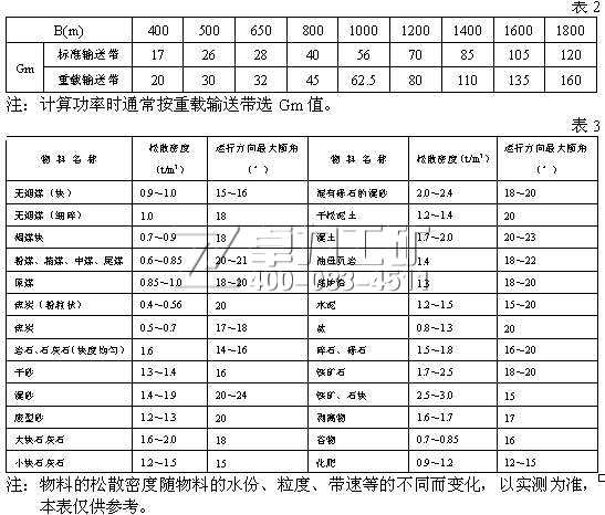 Gm——輸送帶、托輥、改向滾筒等旋轉(zhuǎn)零件的重量,數(shù)值可從表2中查到(kg/m);