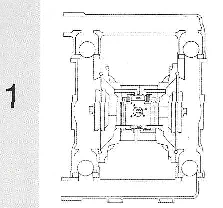 在泵的兩個對稱工作腔中,各裝有一塊有彈性的隔膜6,聯(lián)桿將兩塊隔膜結(jié)成一體,壓縮空氣從泵的進氣接頭1進入配氣閥3后,推動兩個工作腔內(nèi)的隔膜,驅(qū)使聯(lián)桿聯(lián)接的兩塊隔膜同步運動。與此同時,另一工作腔中的氣體則從隔膜的背后排出泵外。一旦到達(dá)行程終點。配氣機構(gòu)則自動地將壓縮空氣引入另一個工作腔,推動隔膜朝相反方向運動,這樣就形成了兩個隔膜的同步往復(fù)運動。每個工作腔中設(shè)置有兩個單向球閥4,隔膜的往復(fù)運動,造成工作腔內(nèi)容積的改變,迫使兩個單向球閥交替地開啟和關(guān)閉,從而將液體連續(xù)地吸入和排出。