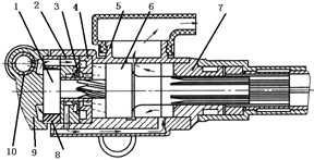 1-螺旋棒; 2-閥柜3-閥; 4-閥套; 5-氣缸; 6-活塞; 7-導(dǎo)向套; 8-棘輪; 11-操縱閥; 12-柄體